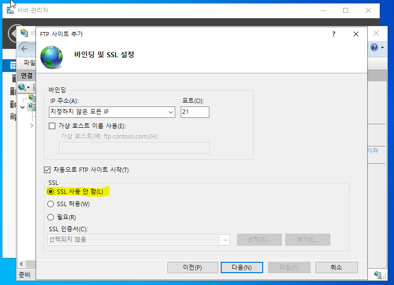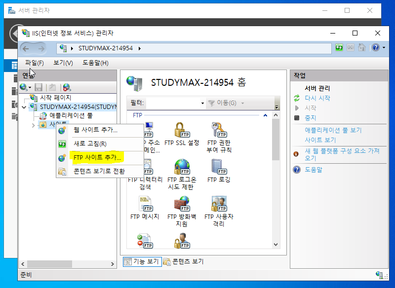 Windows Server 2022 Standard FTP 서버에서 서버 설정이 필요해서 정리해 놓겠습니다.