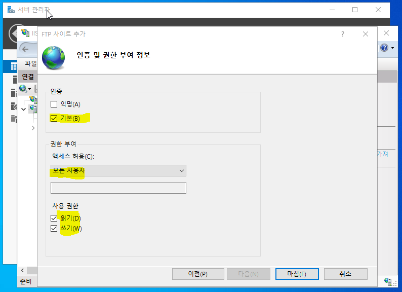 기본 > 모든 사용자 > 읽기, 쓰기 체크 후 마침